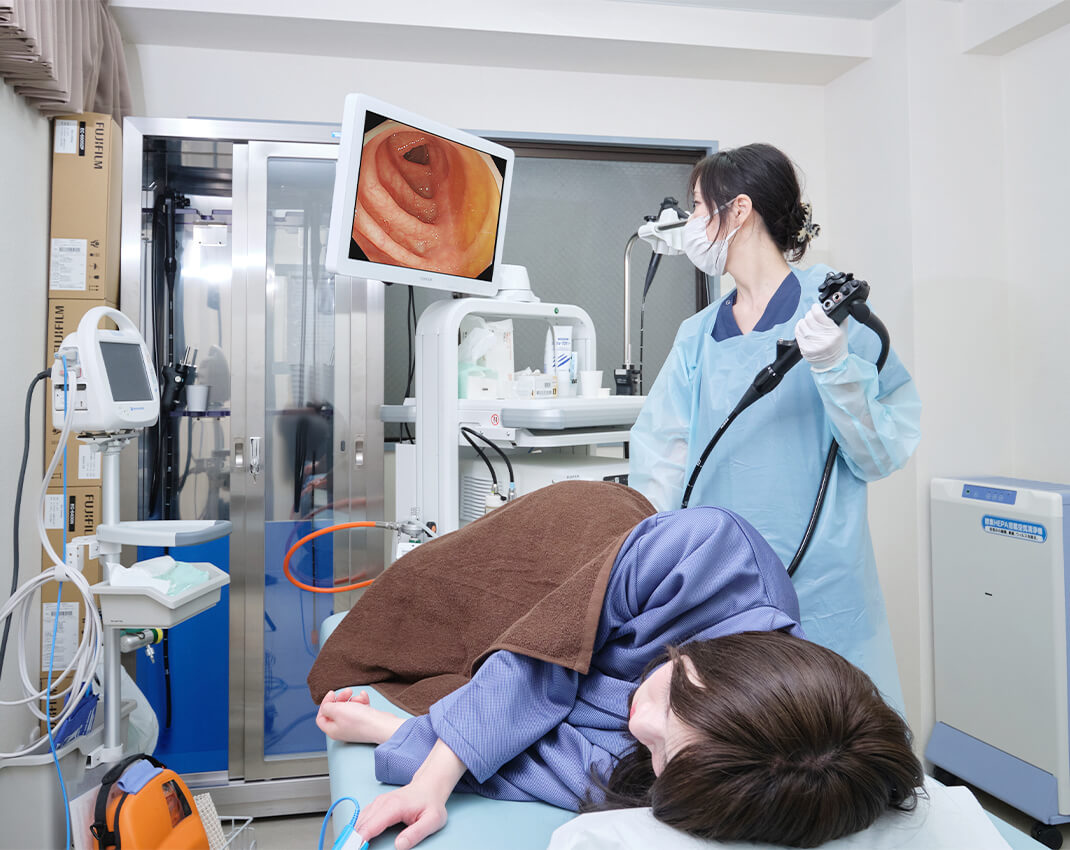 検査時間は、15〜25分程度です。鎮静剤を使用し、できる限り負担の少ない検査を行っています。