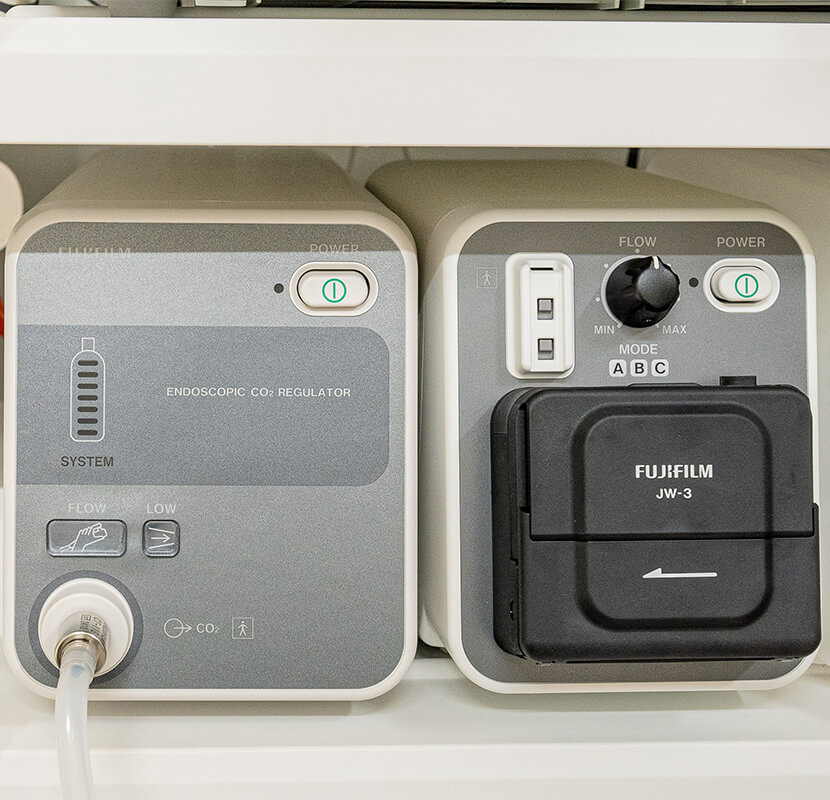 通常の内視鏡検査では、空気を使うことで検査後にお腹の張りを感じることがあります。 当院では炭酸ガスを使用しており、腸内に吸収されやすいため、検査後の不快感が少なく快適です。「検査後がつらかった」という声を減らす工夫をしています。